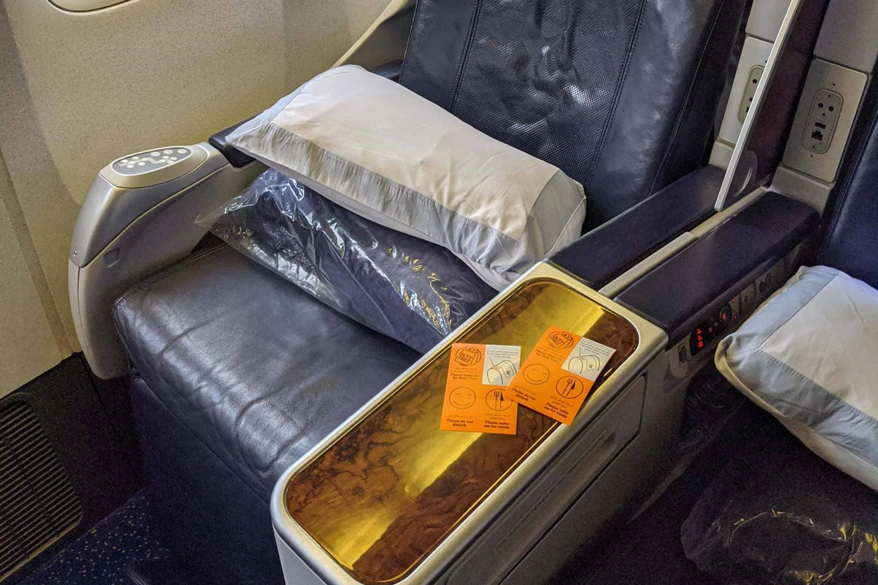 A pillow and blanket were provided. There’s also a small divider to give passengers sitting beside each other some privacy. Our divider was quite flimsy and rarely held in place. I laid down most of the flight so the person beside rarely saw my face. If the person facing the aisle was in lie flat mode, you’d have to step over them.