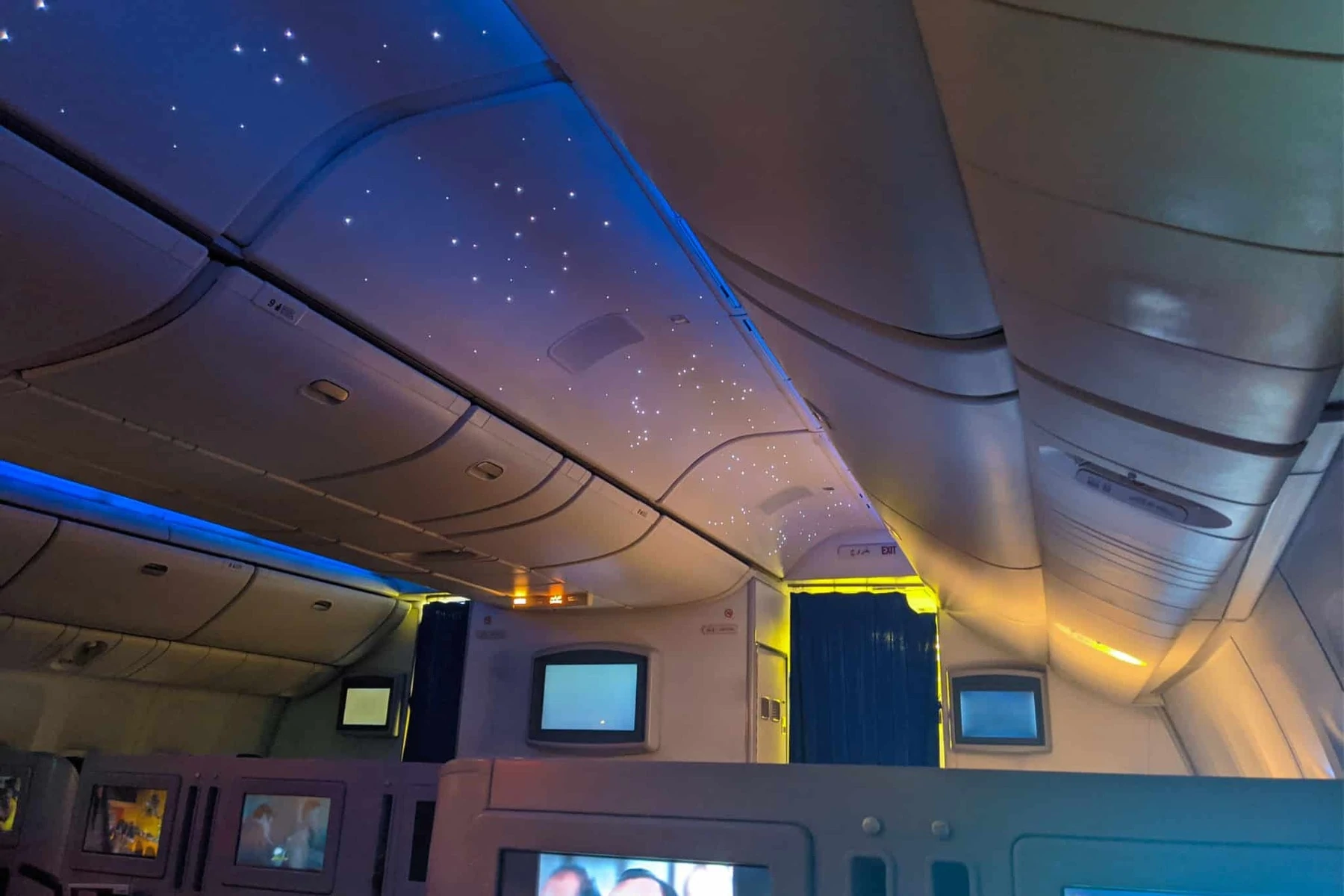 To help you adjust timezones, they project lights that look like stars on the ceiling. Again, there was no chance I was falling asleep but I found out later that some passengers took some sleeping pills so they could adjust quickly.
