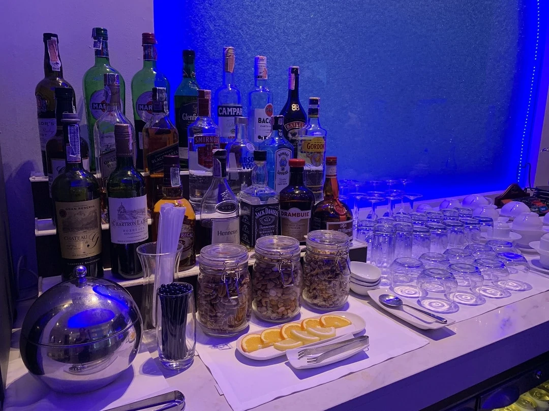 There’s a self-serve bar with a good selection of premium alcohol. I appreciate that all the garnishes were perfectly cut and they had the appropriate glasses available depending on your drink.