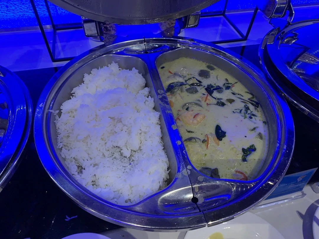 Plain rice and Thai chicken green curry. You can’t be at a lounge in Thailand without Thai curry right?