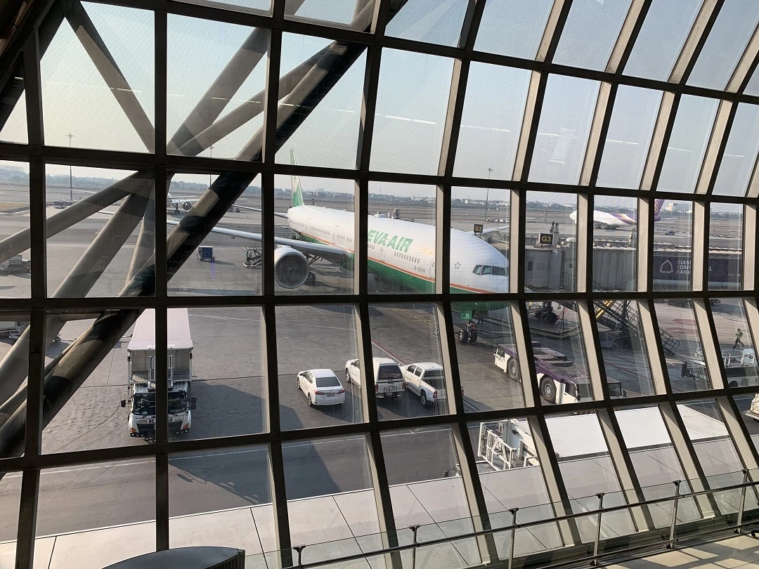 EVA Air Economy Class Boeing 777-300ER Bangkok to Taipei Review airport terminal