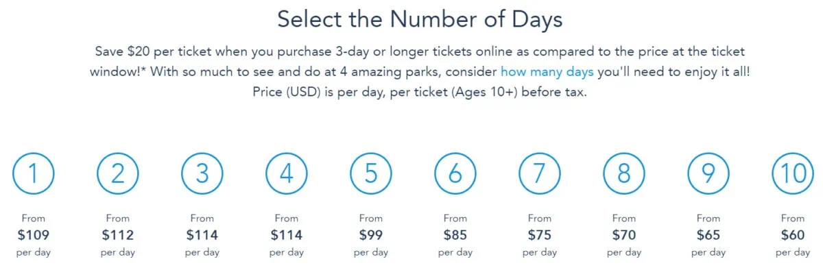 Even if you don’t use points to purchase your Disney World tickets, it’s worth pointing out that admission tickets cost less when you buy more days. When you purchase at least three days online, you’ll save US$20 compared to the ticket window. If you were to purchase six days of tickets, prices would drop down to US$85 per day. Disney is obviously trying to get you to stay in the parks for as long as possible.