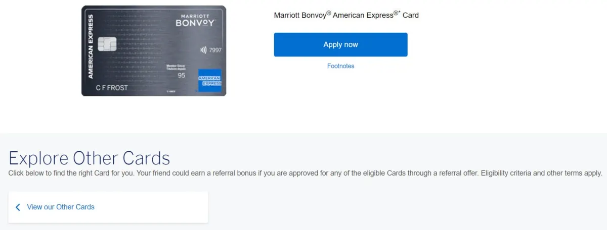 For reference, someone with an American Express Marriott Bonvoy Card to the Business version by clicking “Explore Other Cards” on the referral screen.